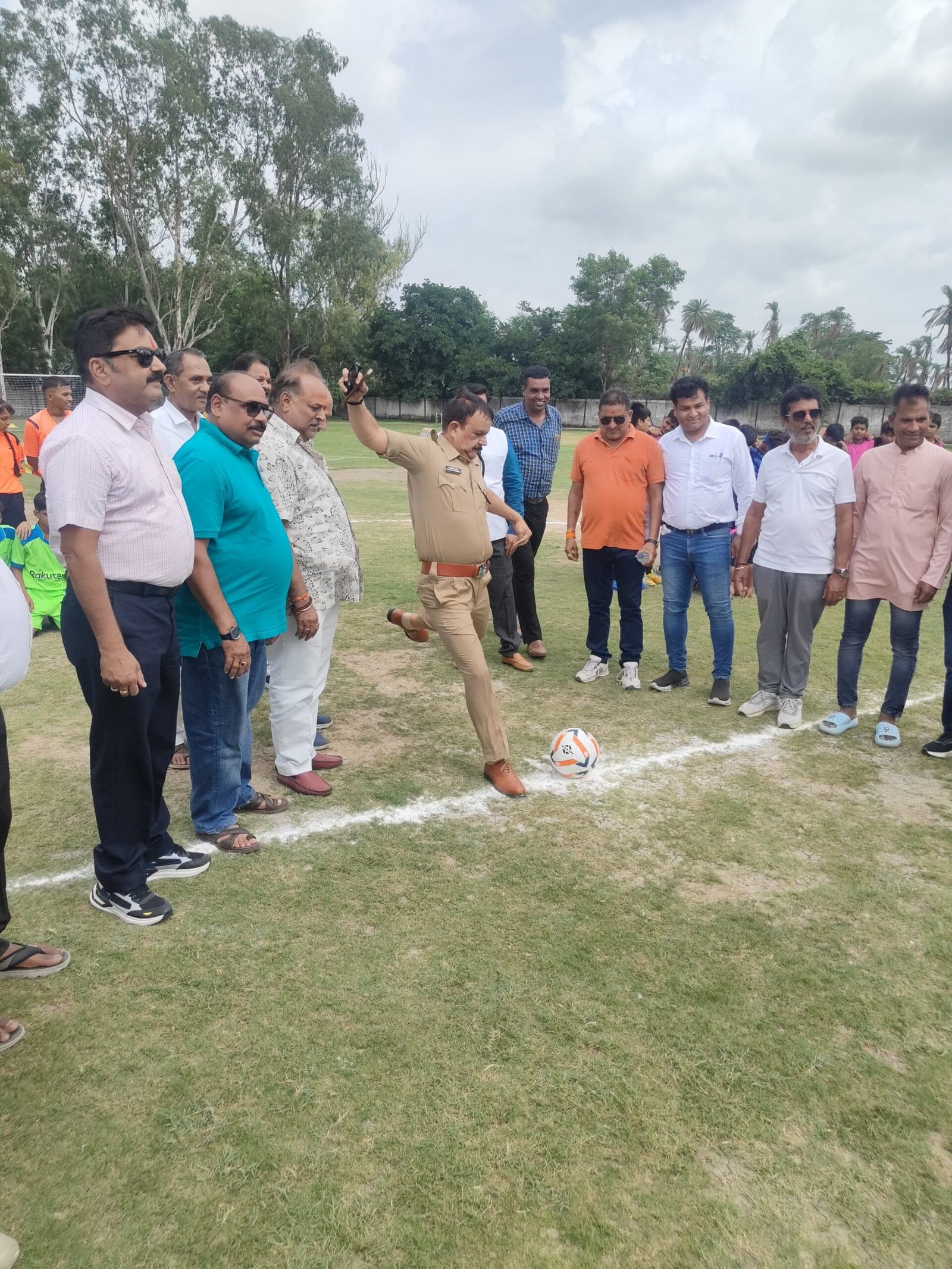 देवास। खेल का मैदान खिलाडिय़ों की तालियां और जैसे ही एडिशनल एसपी जयवीरसिंह भदौरिया ने फुटबॉल को ज़मीन से उठाकर गोल की दिशा में जोरदार किक मारी पूरे ओलंपिक ग्राउंड की फिजा तालियों से गूंज उठी। मध्यप्रदेश फुटबॉल एसोसिएशन एवं देवास जिला फुटबॉल एसोसिएशन के तत्वावधान में आयोजित सब-जूनियर बॉयज़ अंतर जिला फुटबॉल प्रतियोगिता का शुभारंभ शुक्रवार को भव्य अंदाज़ में हुआ।