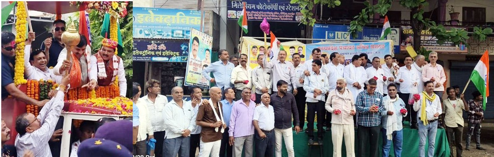 देवास। मध्यप्रदेश पंचायत सचिव संगठन के बैनर तले पंचायत सचिवों ने 7 सूत्रीय लम्बित मांगों का शासन द्वारा निर्णय किये जाने के बाद भी निराकरण नहीं होने एवं मांगों का निराकरण कर, आदेश/निर्देश जारी किए जाने को लेकर हाटपीपल्या आयोजन में हिस्सा लेने पहुंचे मुख्यमंत्री मोहन यादव को ज्ञापन सौंपा। जिलाध्यक्ष भगवान सिंह चौधरी ने सर्वप्रथम मुख्यमंत्री श्री यादव को हनुमान जी गदा भेंट कर मांगे पूरी करने की अपील की। तत्पश्चात देवास ब्लॉक अध्यक्ष कन्हैयालाल पटेल ने ज्ञापन देते हुए बताया कि म.प्र. पंचायत राज व्यवस्था की सबसे महत्वपूर्ण कड़ी ग्राम पंचायत सचिव जो कि म.प्र. शासन की समस्त प्रशासनिक योजनाओं को 23 हजार ग्राम पंचायतों में जमीनी स्तर पर धरातल पर उतारने का कार्य करता है। पंचायत सचिव वर्तमान परिदृश्य में सबसे कम वेतन वो भी अनियमित होने की दशा में भी प्रशासन का एक महत्वपूर्ण अंग बनकर अपने कर्तव्यों का निर्वाहन करता है। विगत 1 वर्ष पूर्व म.प्र.शासन द्वारा लिये गये निर्णयानुसार पंचायत सचिवों के महत्वपूर्ण मांगों पर घोषणा एवं निर्णय हुए लेकिन आज दिनांक तक उनका क्रियान्वयन नहीं होने से प्रदेश के 23 हजार पंचायत सचिव गंभीर परेशानियों का सामना कर रहे है। पंचायत सचिवों की मांग है कि प्रदेश के पंचायत सचिवों का जिला संवर्ग से राज्य स्तर पर पंचायत विभाग में संविलियन किया जाकर समस्त शासकीय कर्मचारियों की भांति सुविधाएँ के 3 अगस्त 2023 की घोषणा क अनुपालन में लाभ प्रदान किया जावे। प्रदेश के पंचायत सचिवों को वर्ष 2018 में दिये गये छठवें वेतनमान की वेतन गणना में सेवाकाल की गणना नियुक्ति दिनांक से ना करते हुए, त्रुटिपूर्ण वर्ष 2008 से की गई है, सेवाकाल की गणना नियुक्ति दिनांक से की जाकर 6वें वेतनमान का शुद्ध वेतन निर्धारित किया जाकर उसे 7वें वेतनमान में की गणना में आगे बढ़ाया जावे। पंचायत सचिवों को 7वें वेतनमान का लाभ हेतु शुद्ध गणना पत्रक जारी कर, 7वें वेतनमान का लाभ दिये जाने के पूर्व सेवाकाल की गणना 6वें वेतनमान में नियुक्ति दिनांक से की जावे। शासन द्वारा जब तक स्थाई पेंशन का प्रावधान ना हो तब तक वर्ष 2008 से ही सेवानिवृत्त हुए पंचायत सचिवों और भविष्य में सेवानिवृत्त होने वाले पंचायत सचिवों अपने जीवन निर्वाह के लिए सेवानिवृत्ति पर एक मुश्त 10 लाख रू. सम्मान निधि प्रदान की जावे। शासन के प्रावधान अनुसार पंचायत सचिव 2 पदौन्नति के लिए पात्र है। पंचायत सचिवों की विभाग के वरिष्ठ पदों पर एवं संवर्गों में पदौन्नति प्रदान की जावे। पंचायत सचिवों को समस्त शासकीय कर्मचारियों की भांति समयमान वेतनमान का लाभ प्रदान किया जावे। एक जिले से दूसरे जिले में नियुक्ति हेतु आयुक्त, पंचायत राज संचालनालय से एक आदेश समस्