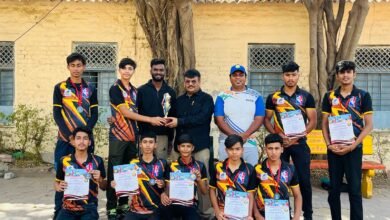 राज्य स्तरीय रोलबॉल प्रतियोगिता में पदक जीते खिलाडियों का हुआ स्वागत